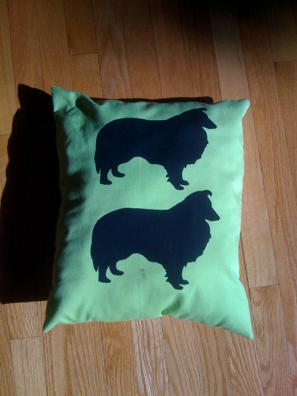 Jordan’s Bro’s bday present.. They had a sheltie way back when, Chelsea, and miss her like woah… I made him a Chelsea Sheltie pillow for his new diggs. Success.